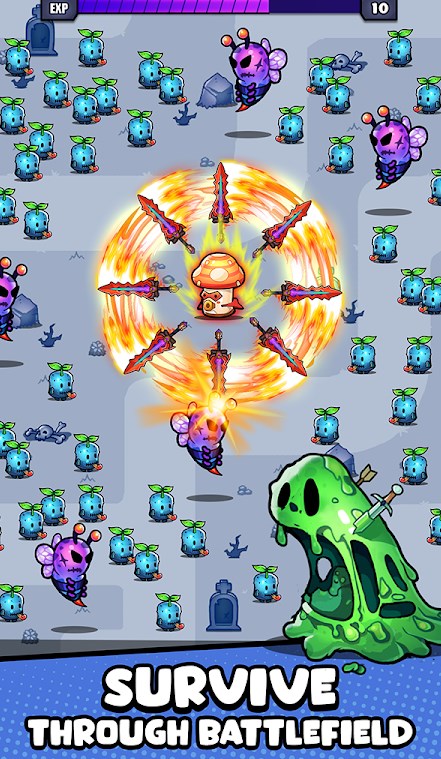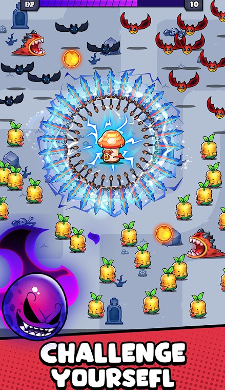 蘑菇幸存者游戏Mushroom Survival是一款蘑菇战士打怪生存闯关游戏,游戏中扮演一位蘑菇英雄,踏上令人惊叹的冒险旅程,我们要不断和邪恶的怪物展开作战,通过自身强大的能力将其消灭,拯救蘑菇王国,在挑战过程中不断去提升你的力量。