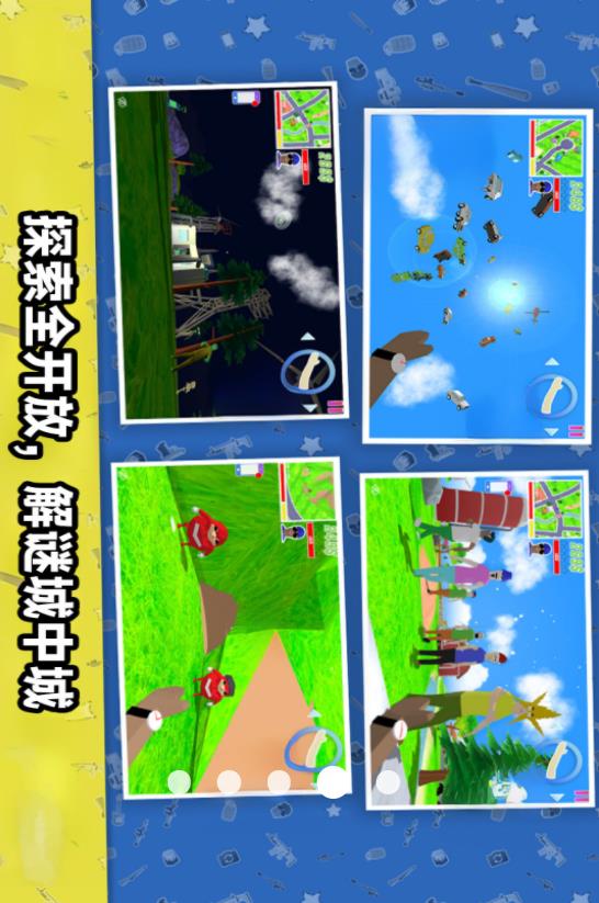 2、熟悉几个按钮的操作,利用虚拟摇杆四处移动,还有道具可以使用,没有限制。