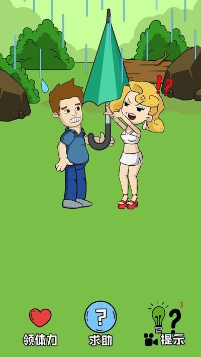 2、瞅关卡1游戏界面,点下方中间带问号的求助按钮,或右侧蓝色提示按钮,获取通关线索。