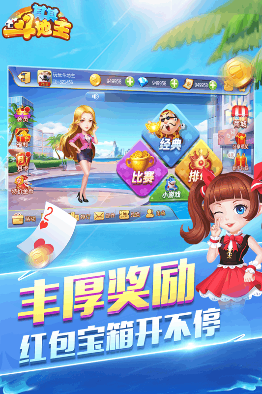2、有超刺激的不洗牌模式,当人人手中都有一副好牌时,那场面你可想过?此外游戏的福利也是非常好的,每天登录和完成各项活动都能获得丰厚的奖励。