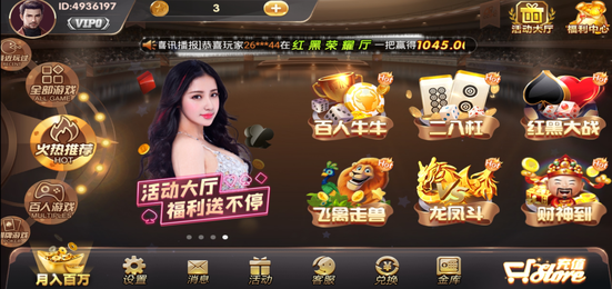 这是一款可玩性很高的手机棋牌游戏,街机电玩游戏+棋牌游戏的完美融合,百人牛牛,李逵劈鱼,炸金花,水果机等等,满足棋牌爱好者的一切需求,现在登录游戏还有众多好礼相送,感兴趣的小伙伴快来下载游戏试试吧~